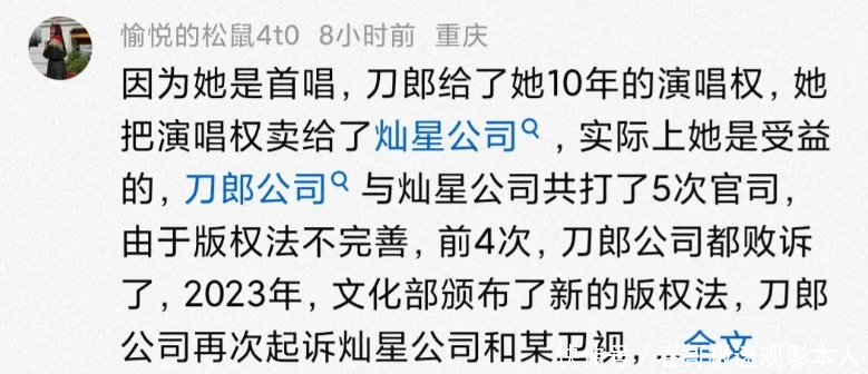 只可说,刀郎让她顶着爱徒的状貌用了10年版权发展我方的行状,也曾算是情至意尽了。
