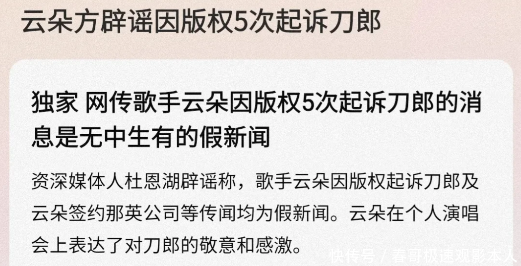 于是刀郎告状,自后云朵又通过老公的公司告状刀郎欲夺回版权。不外好在刀郎这边在败诉数次后,最终照旧拿回了这几首歌的版权。